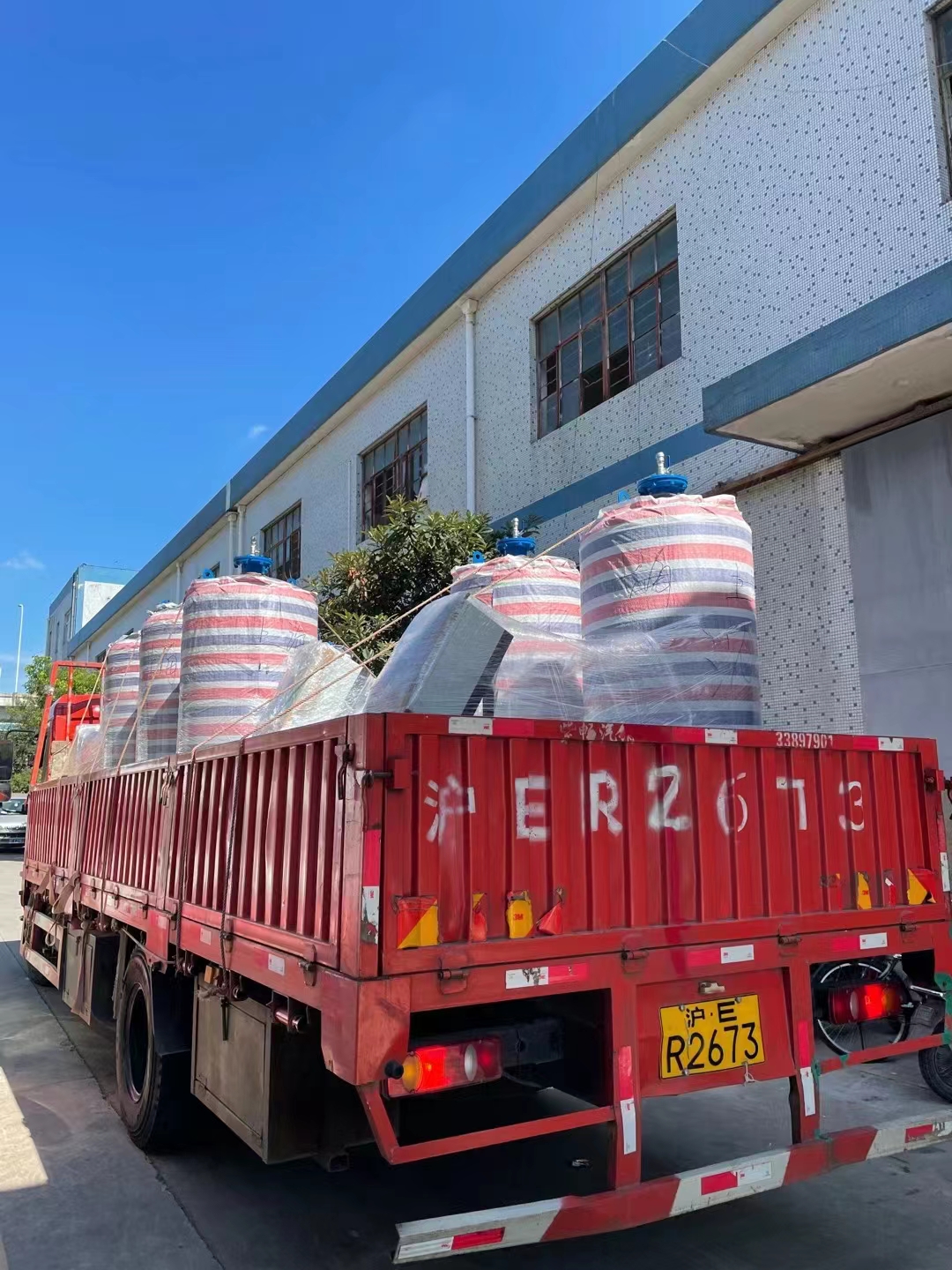成都項目:一批智能砂濾裝置和不銹鋼水箱及加藥裝置裝車發(fā)貨完成,上海奧棟承諾必達!