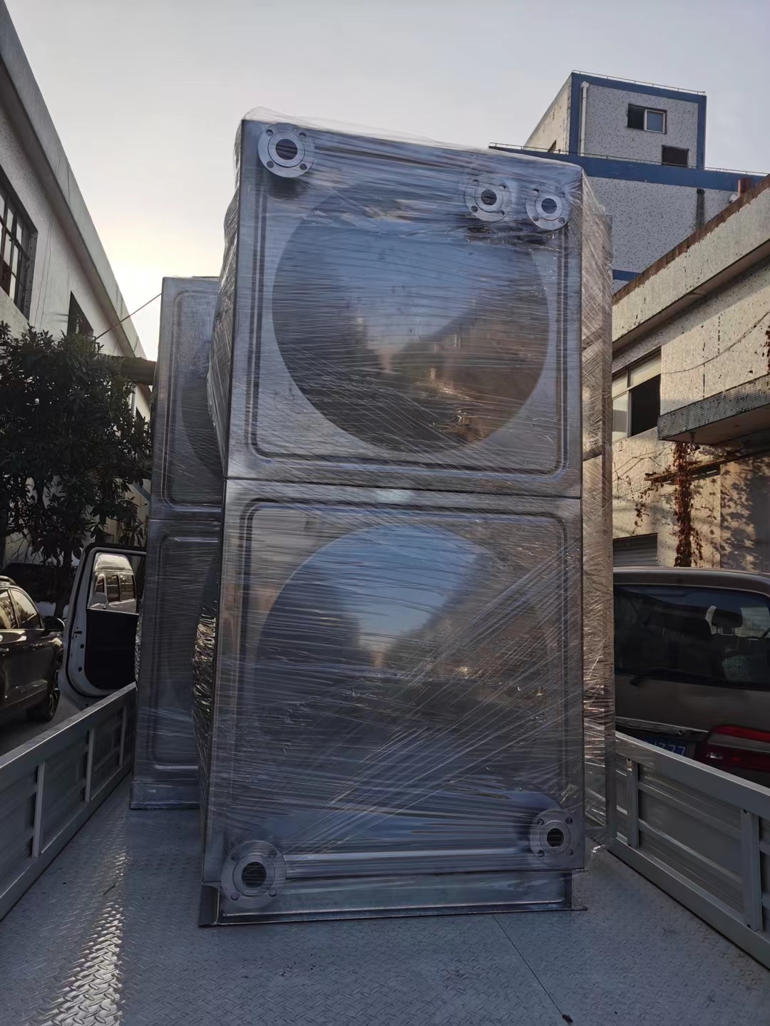 四川眉山項目、上海項目:一批超大氮封水箱及智能變頻供水機組裝車發(fā)貨完成,上海奧棟承諾必達!